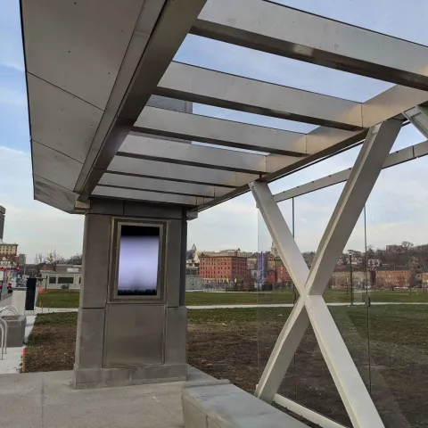 Real-time information displays show bus schedules as well as changes and disruptions to service. These smart displays also offer additional information about area attractions and events. If you have any suggestions for information you would like to see or that will make your trip easier, please let us know.