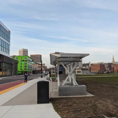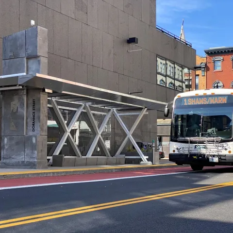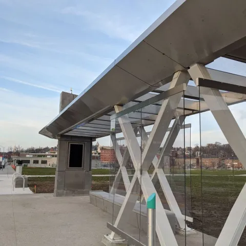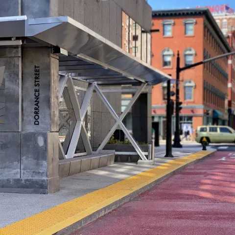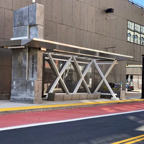 We carefully considered maintenance needs as part of our design process and have constructed shelters and other amenities to be as resistant as possible to damage and vandalism. Instead of glass panels, we used a polycarbonate material and RIPTA has an inventory of replacement panels on hand in case of damage.