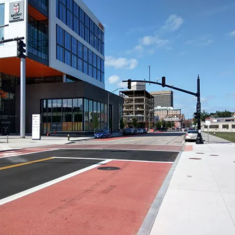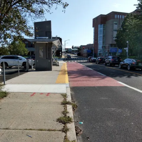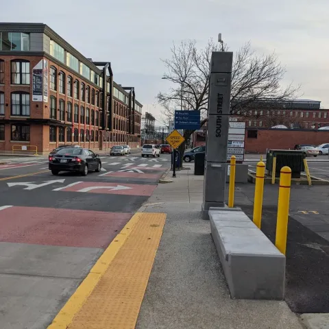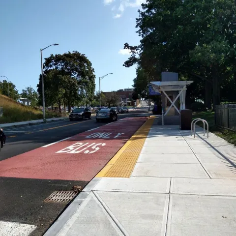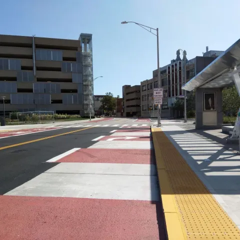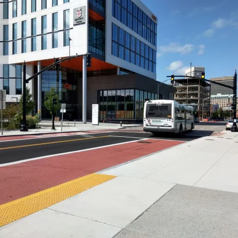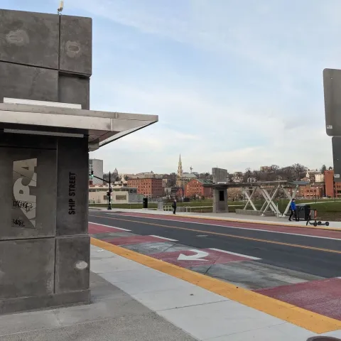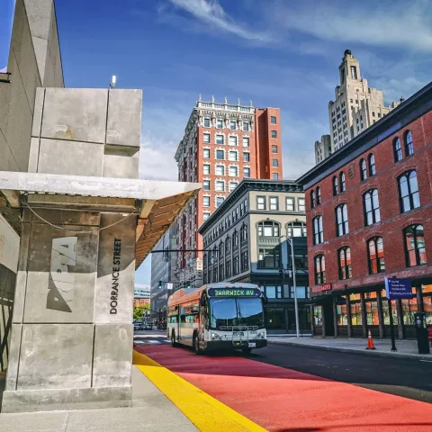 Transit Signal Priority (TSP) adjusts the timing of a traffic signal’s red and green cycles to reduce the amount of time a transit vehicle spends waiting at a red light. Extending green lights for buses along the R-Line reduced the overall travel time by 10%. We believe it will reduce future bus travel times along the shorter DTC corridor between RI Hospital and Providence Station by about 20%. TSP will also make travel times along the DTC more reliable, which will help create a service more people can depend on.