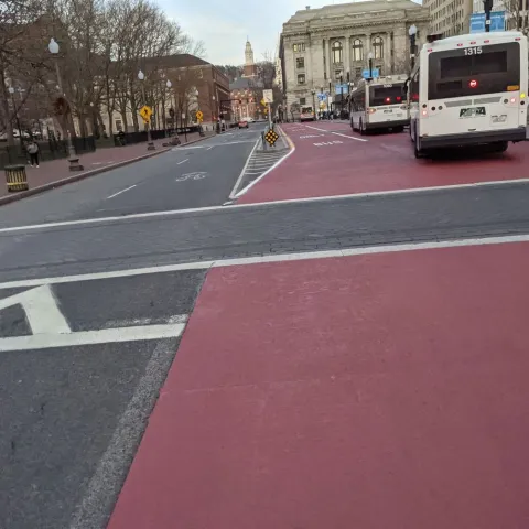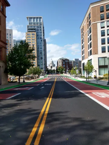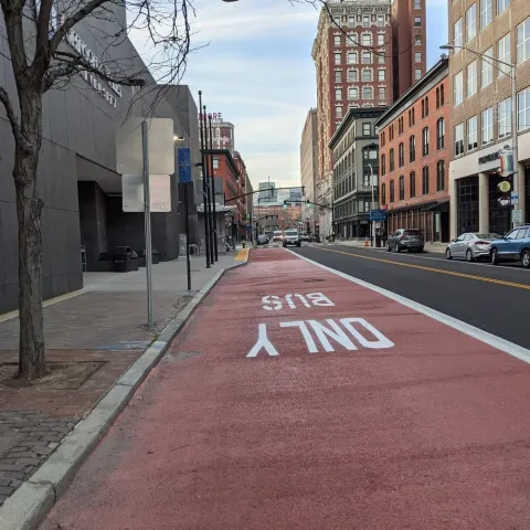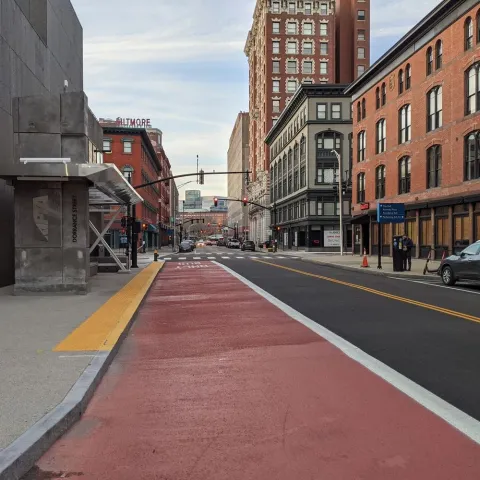 Bicycle lanes were installed on Exchange St. leading to Providence Station, and possibly on certain segments in the Jewelry District. For safety reasons, bicycles are not allowed in the dedicated bus lanes.